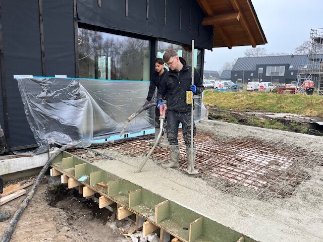 Aanbouw vloerverwarming door gehele woning met schuimbeton