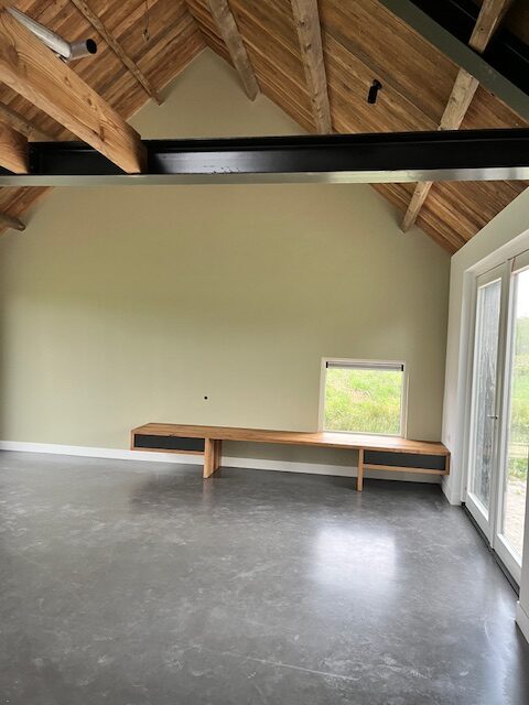 Nieuwe uitgevlakte houten vloer incl. vloer isolatie, inbouwkast en omtimmering schouw in Gytsjerk